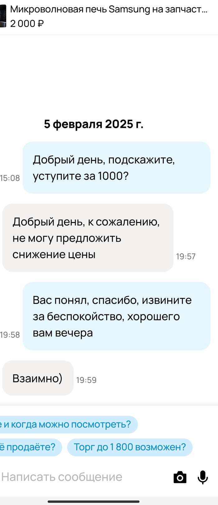 Какое то нытье странное. Я могу и на авито и в любом месте свою цену продавцу предложить, нет желания, пусть не соглашается. Может даже не отвечать. Похер.