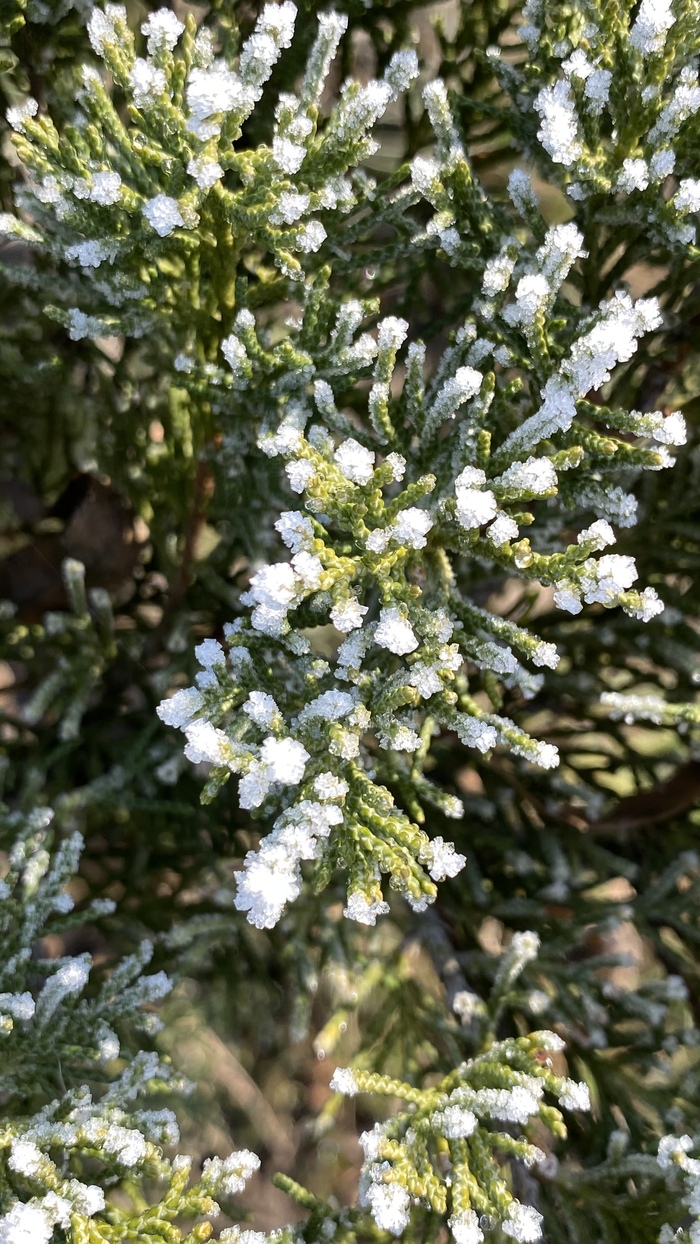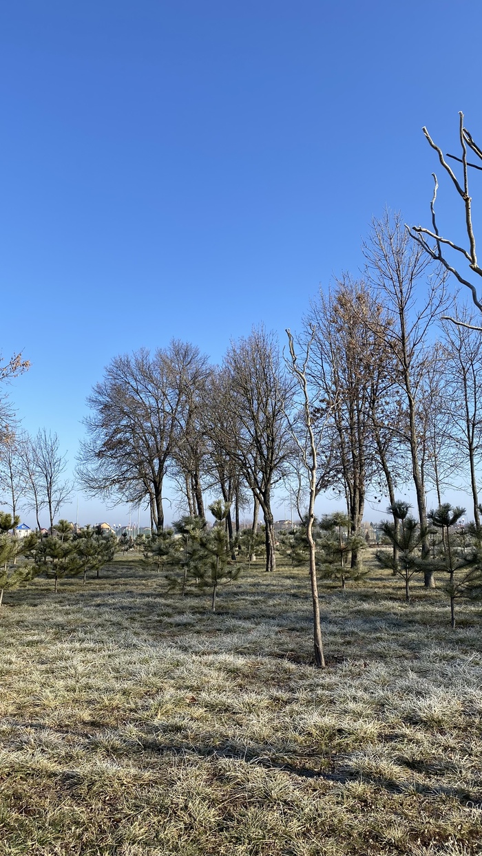 Утром был лёгкий туман после которого остался симпатичный иней на траве, деревьях и прочих поверхностях ☺️