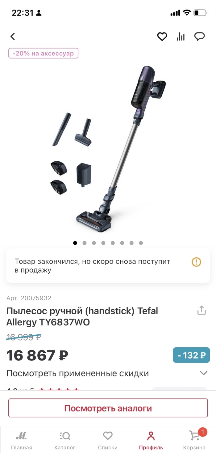 С коллегами сегодня обсуждали мою недавнюю покупку (пылесос) и одна попросила кинуть ссылку. Я зашла в приложение и с удивлением обнаружила, что за неделю он почти в два раза подорожал! Также подросла в цене приобретенная мной мультиварка!
