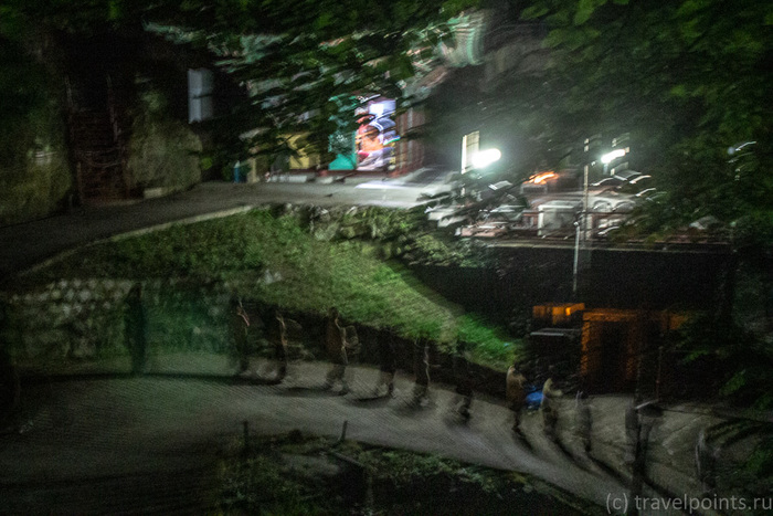 Подъем в 4 утра, чтобы успеть прийти в себя, почистить зубы, одеться и быть на месте сбора в 4:20. На улице темно и так холодно, что аж зубы стучат, все-таки уже октябрь. Мы все идем гуськом вслед за монахами в дом для молитв. Все идут молча. Дорога освещается редкими фонарями, а вокруг темнота, тишина, и шорох наших шагов и шелест одежд кажутся единственными звуками на земле. Я умудрилась даже что то сфотографировать в темноте дрожащими руками. Качество, конечно, отстойное, зато отлично отражает всю полноту ощущений этого момента! Кстати, в правилах монастыря сказано, что опоздавшие или проспавшие утреннюю молитву, наказываются выполнением 3000 поклонов. Понятно, что при таких условиях, желающих проспать или опоздать, находится мало.