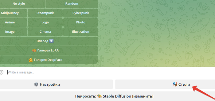 Выбрал стиль. В боте доступны аниме, акварель, комикс, 3D и многое другое.