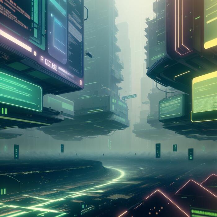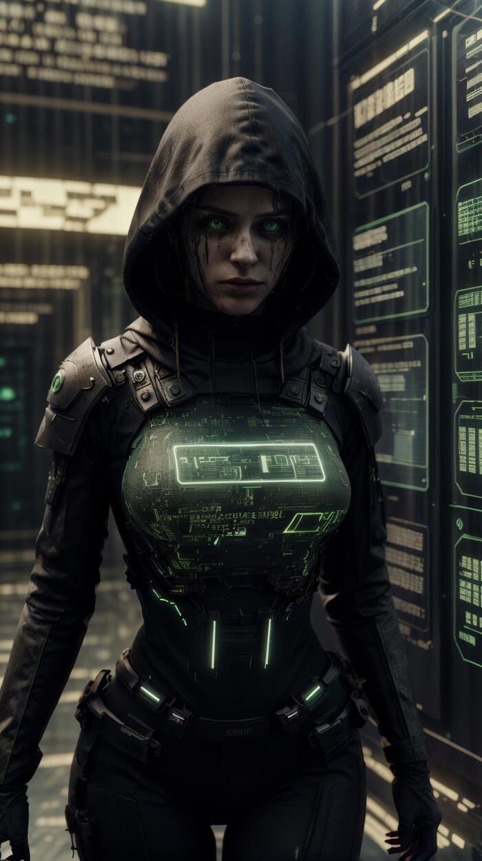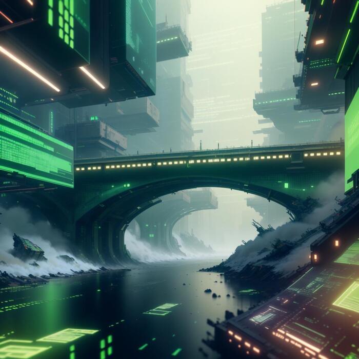 Мир, где улицы являются хаотической сетью кабелей, здания - живыми хранилищами взломанных данных, а даже реки и одежда переполнены остатками утечек информации. Здесь данные не только валюта, это искусство, украшающее каждый аспект жизни в захватывающем дисплее цифрового бунта.