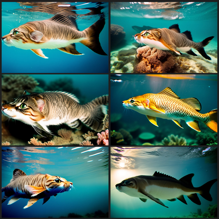 Создано с помощью Stable Diffusion и смешивания запросов [lion:lionfish:15] и т.д. Как это работает подробно писал у себя в ТГ, где обучаю всем этим штукам.