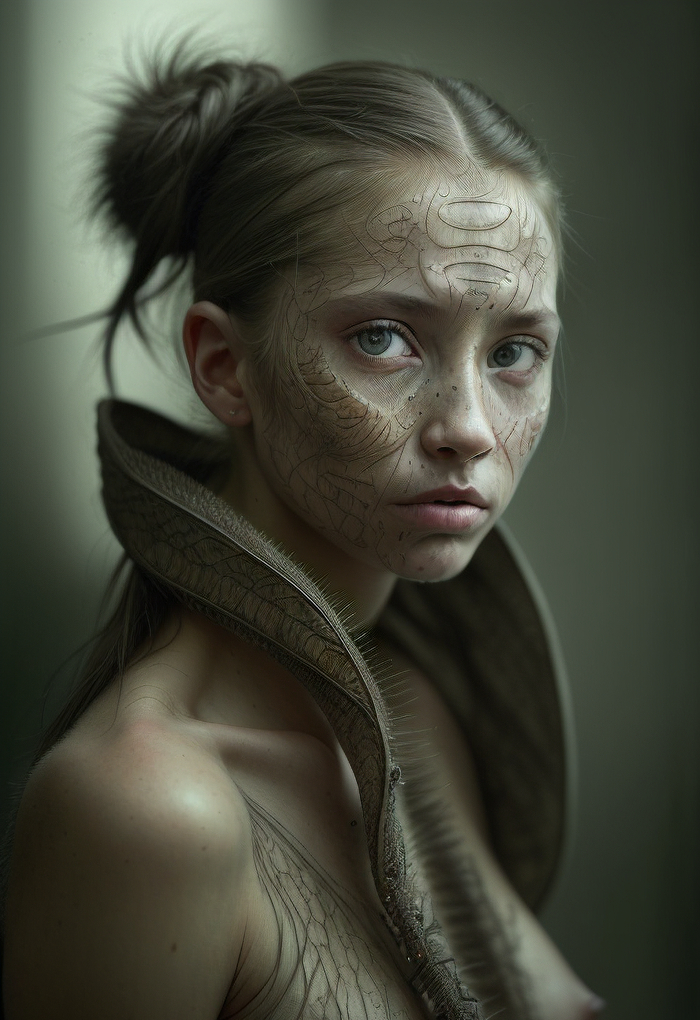 И вот, итоговое изображение меня удивило много больше. Вспомнилась страшная и горячо любимая книжка "Преисподняя" Джеффа Лонга. Там были описаны похожие существа - хейдлы.