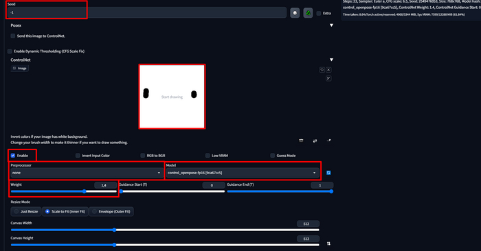 На скрине ниже обратите внимание, что параметр Weight выставлен на 1.4 — так мы повышаем влияние нашего белого фигуличного квадрата, отчего позы будут максимально похожими на оригинал. Если поставить меньше, то позы меняются больше.