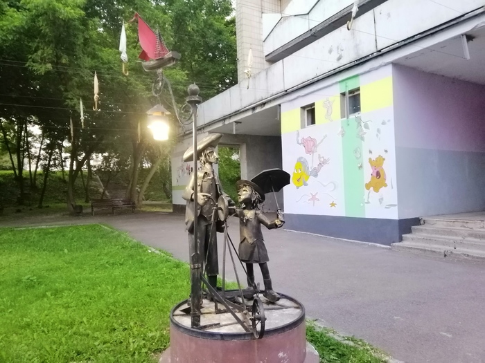 Сзади скульптуры - зонтики, когда они открыты - место становится прям праздничным.
