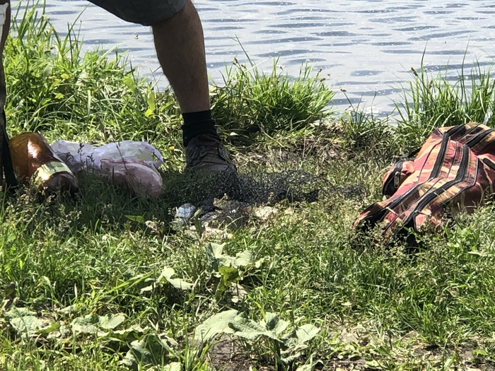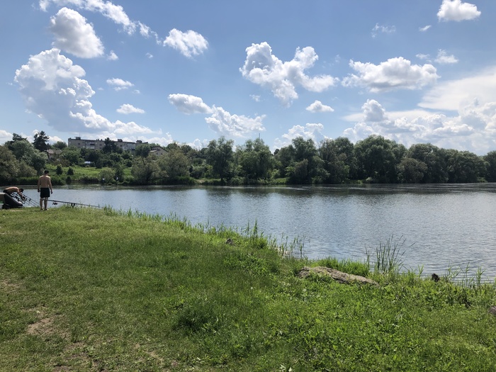 Мужик ловил рыбу. Вроде штук 7-9 поймал карасей с детскую ладошку
