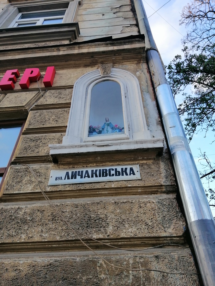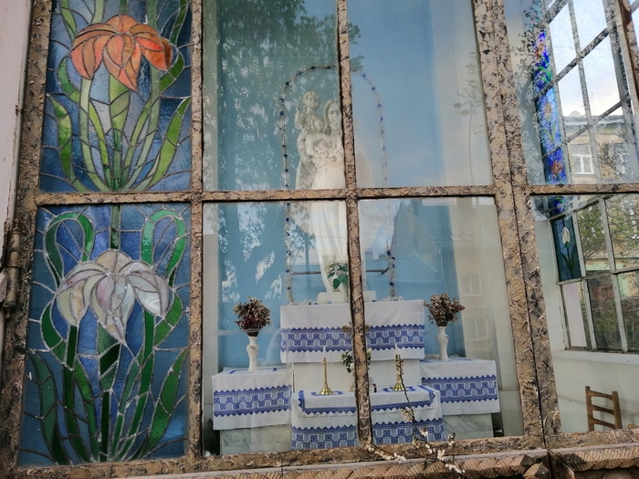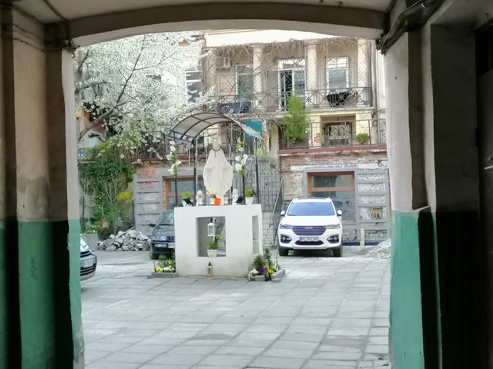 Закрытый вход во двор, снимала через решетку. Опять же — во дворе жилого дома капличка.