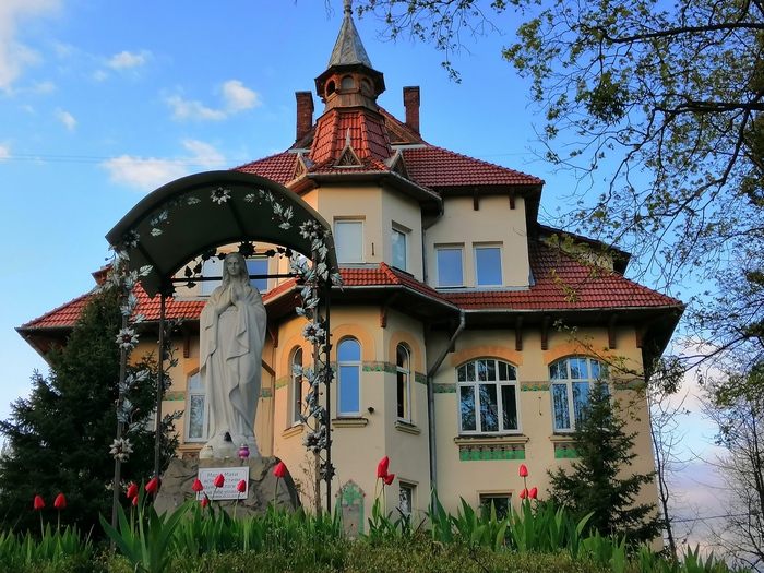 Я думала, тут царь какой-то живет. А нет. Госпиталь пограничников. Собственно, это всегда был госпиталь. Изначально — санаторий, 1908 года. Потом переходил от государства к государству, но назначение все время было одно и тоже — тут лечили людей.