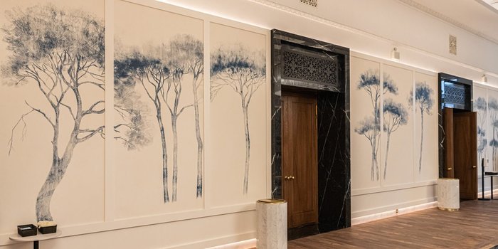 В фойе отреставрировали сохранившийся потолочный карниз и фриз.