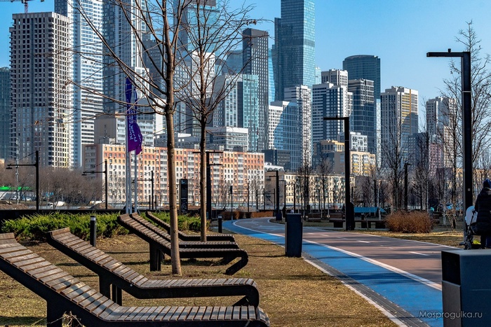 Теперь с этой точки вид открывается на парк и одну из сталинских высоток, что стоит у устья реки Яузы, на Котельнической набережной Москвы-реки