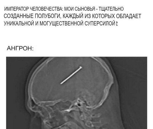 Имперские Кулаки (орден) - упертые мазохисты: если зароются в землю, то выкопать можно только их трупы, любимые развлечения - гравировка по костям, своим, на живую и самобичевание в "перчатке боли" - нейростимулирующее устройство, вызывающее сильнейшую боль, но не позволяющее провалиться в обморок от болевого шока.