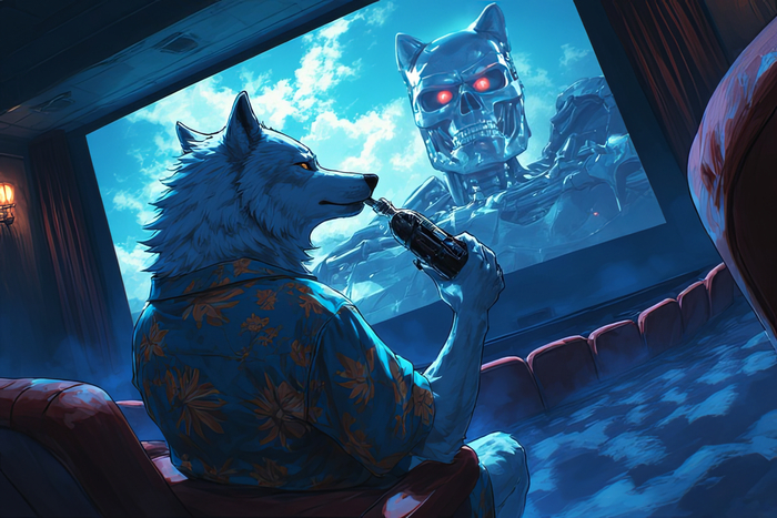 9 wolfmks Галерея Артов Wolfmks Серия Арты на свободную тему Wolmks в Торговом центре Сити-парк Град #5 3 месяца назад Да! Я в сотый наверное раз смотрел Терминатор 2 и впервые в кино. Показать полностью 12 [моё] Контент нейросетей Фурри Арты нейросетей Furry Art Furry wolf Длиннопост Ещё 0