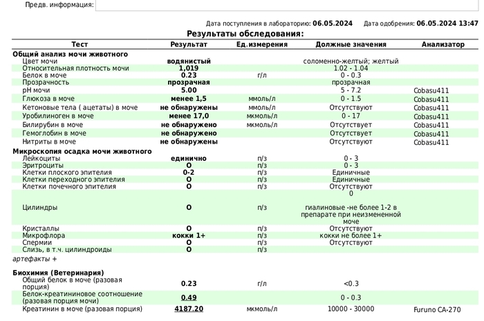 Доброго дня, пикабушники! Хотелось бы услышать мнение ветеринаров по ситуации с котом. Коту 15 лет, обратились в клинику с проблемой расстройства ЖКТ - после приема пищи практически сразу бежал на горшок и какал жидко, с газами, но совсем немножко. В целом - чувствовал себя хорошо, аппетит не пропадал, воду пил, всё как обычно. Своими силами - пробиотики, энтеросорбенты - решить не получилось, пошли к врачу, сдали анализы.