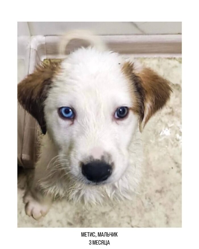 Пёс молодой - предположительно 1 год. Глаза разные, не кастрирован, чипa и oшeйникa не было. Истощен - видимо не первый день бродяжничал. При этом шерсть была очень ухоженная, обследование у ветеринара никаких проблем (кроме истощения) со здоровьем не выявило.