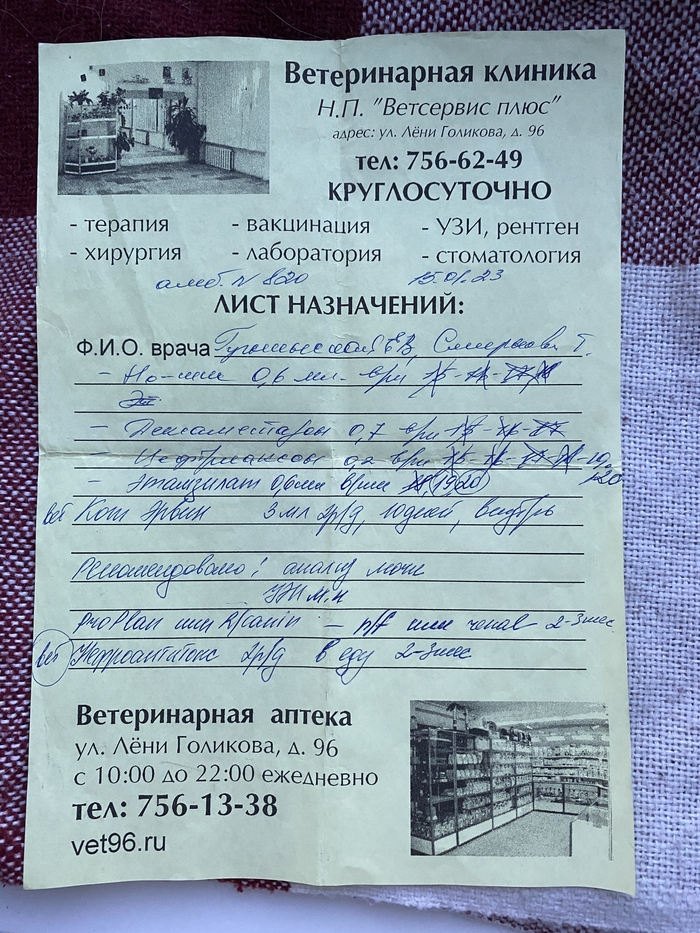Затем, в середине января случился приступ цистита. Наш бедный котик ходил в туалет в корзину для белья, в надежде, что ему так будет не больно. Мы обратились в клинику рядом с домом (не там где делали кастрацию, так как там прием надо было ждать до 6 вечера, а времени было 10 утра и он бегал в туалет каждые 5 минут) и нам прописали лечение с уколами, которое мы исправно выполняли.