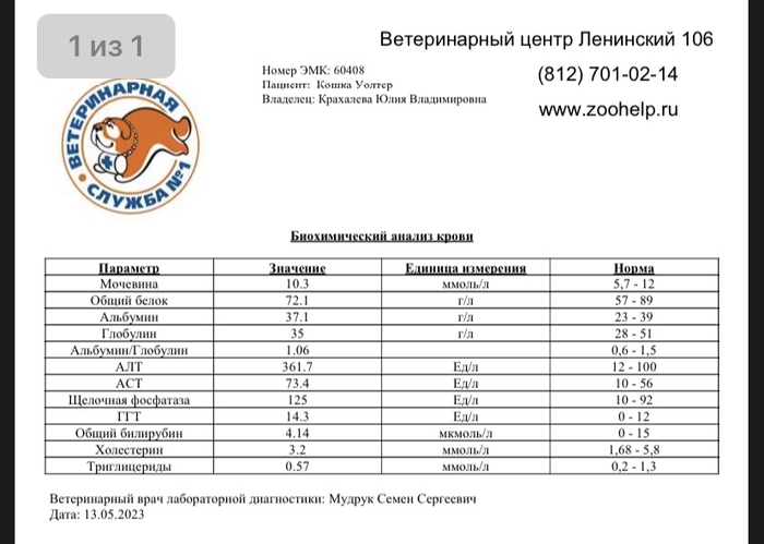 Мы закончили лечение здесь, нам сказали вернуться на осмотр через 1-2 месяца. Но спустя неделю приступ цистита повторился, мы пошли в клинику, где проводили кастрацию. Там нам поменяли корм (с renal на urinari) и назначили Онсиор и экспресс успокоин. Цистит прошел и до сих пор не возвращался. Мочу сдували спустя месяц после лечения - все в норме. Это был конец января. А в середине февраля у кота началась рвота. Периодическая, часто по утрам, иногда с едой, иногда без еды, просто жидкость. Мы снова обратились в клинику, где нам вылечили цистит. Там мы сдали кровь.
