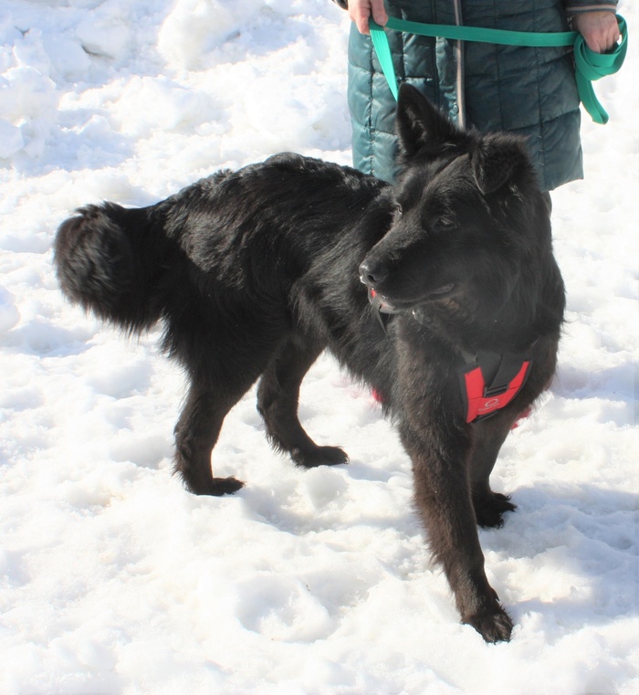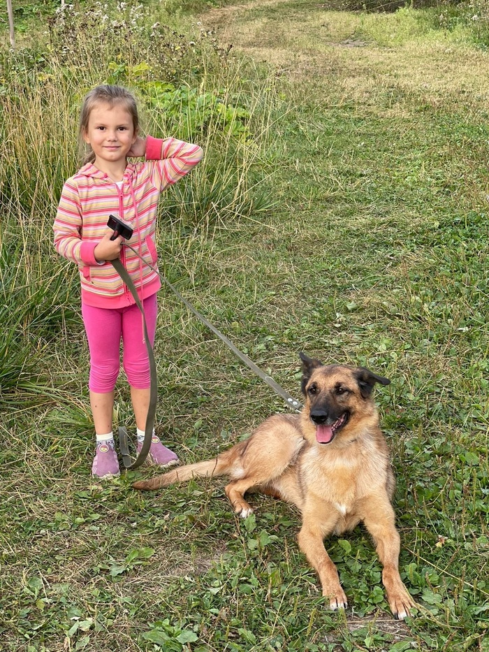 Черника девочка молодая - до трех лет. Она хорошо ходит на поводке, а это значит, что она точно бывше-домашняя собака.
