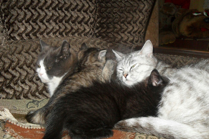 Попала однажды ко мне на постоянное проживание кошка шотландской породы, что вдобавок ко всем имеющимся проблемам неожиданно оказалась в интересном положении от неизвестного пушистого кавалера - это выяснилось не сразу, а спустя некоторое короткое время и по мере округлившегося кошачьего живота. Таким образом вскоре у меня проживала не только кошка, но и трое её родившихся на пасху котят. А это оказалось весьма серьёзной проблемой! Время тогда было суровое, голодное. Деревня. С кошачьим потомством решались вопросы радикально просто и безжалостно, хотя постепенно от подобного в моей семье отходили. Поскольку проживал я на территории родителей, то права на своё шибкое слово не имел и мало что мог решать. И всё же за мохнатых новоиспечённых питомцев встал стоически грудью, активировав реки слёз, соплей и слюней. По итогу мне удалось отстоять котят! Но проблема в виде трёх пушистых комков осталась в доме нерешённой. Что делать: оставить или раздать? Оставить - трудности. А раздать - было бы кому.