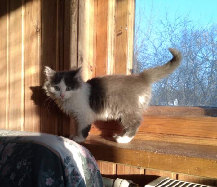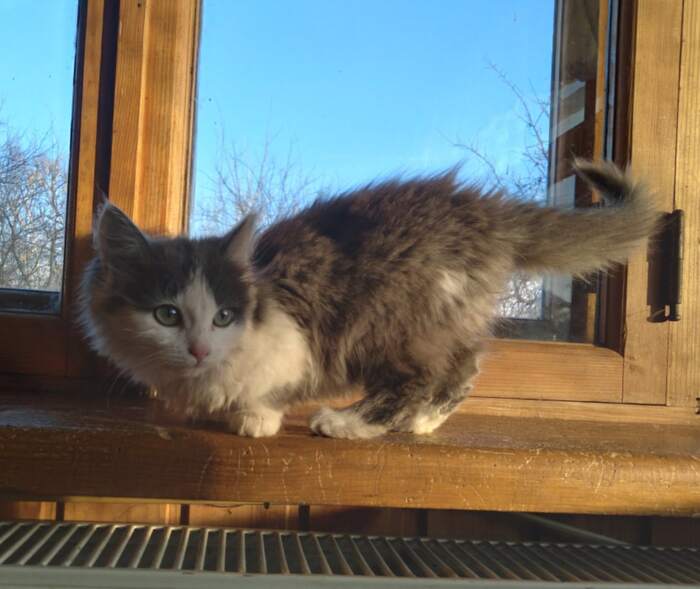Мальчишка очень ласковый, любит прижиматься к ногам, машет хвостиком от добрых слов и прикосновений.