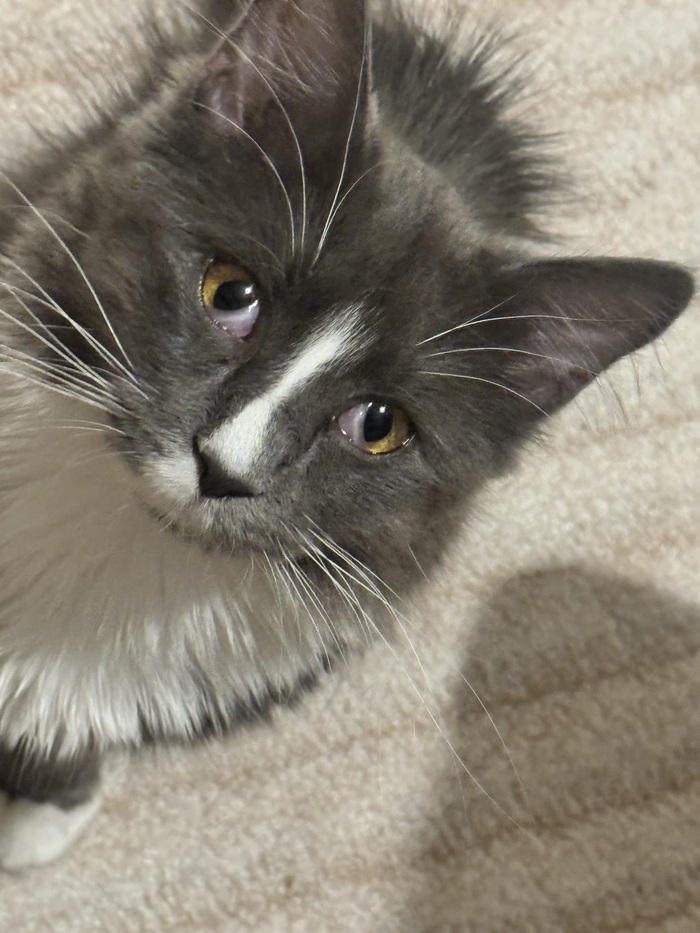 Он невероятно социальный, ласковый и разговорчивый. Уже сейчас издаёт множество разных звуков, «мурлычет», когда я его глажу.