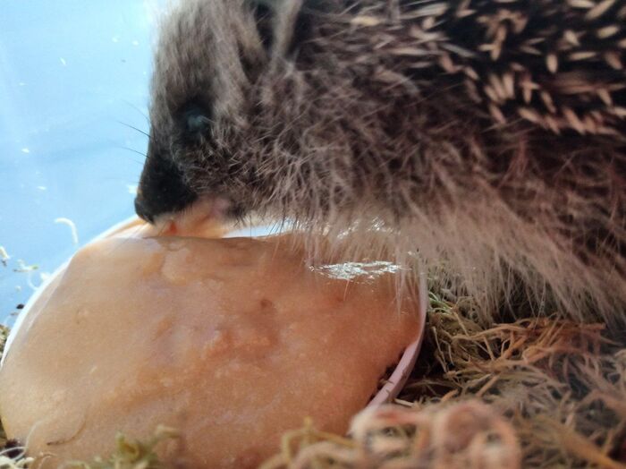 Всём привет. Ёжик выжил. Потолстел. Почти доколола ему антибиотик. Он много ест, ругается, спит и шумит. Из развлечений - подпрыгнуть, когда я тяну к нему руку для, укола, и уколоть иголками. При этом надо громко пыхтеть.