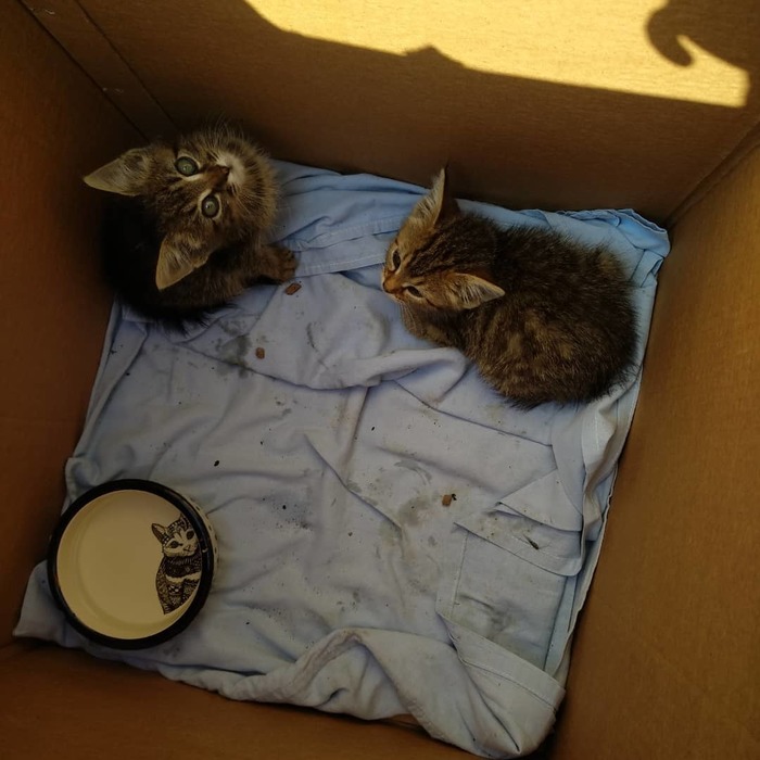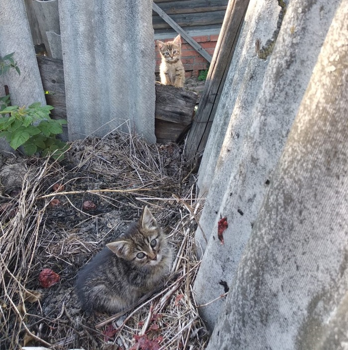 На днях спасла из деревни двух малышей, мальчика и девочку, которых бросила мама (или что-то с ней случилось, не знаю, но она за несколько дней так и не вернулась). Неадекватные соседи гоняли их с собаками. Запуганные и ужасно изголодавшиеся котятки пришли от соседей и грызли гнилые яблоки на компостной куче.
