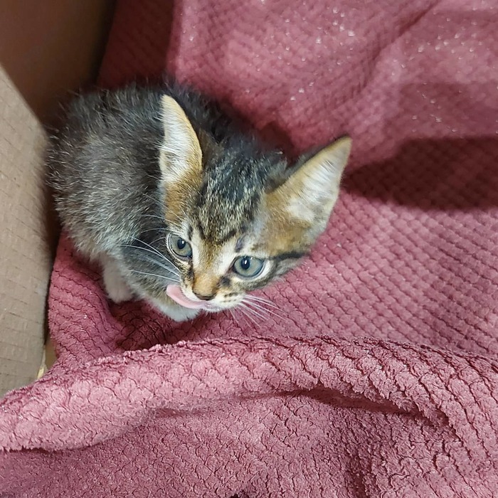 Здравствуйте уважаемые Пикабутяне. Буквально 10 минут назад в подъезде нашла котёнка. Что делать? Сильно кричал, сейчас вроде подуспокоился. Пробовала покормить молоком, но безрезультатно( Оставить у себя возможности нет, да и опыта выкармливания таких крох нет.
