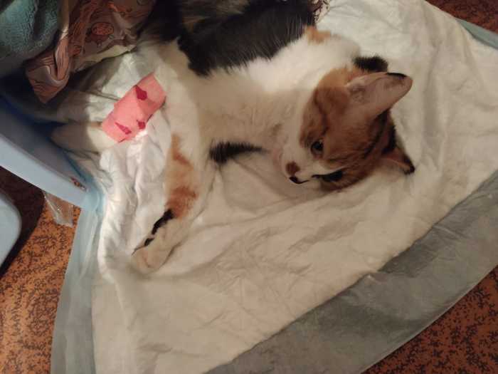 Позавчера нас прооперировали в ветклинике на Хибинском проезде. Поставили пластину и вкрутили винты. Операцию делал прекрасный доктор Кондратьев Сергей Валерьевич. Операция длилась 3 часа. Звонит каждый день интересуется как у нас дела, просит высылать видео коши. Коша уже кушает и ходит на лоток. Колем уколы обезбола и антибиотика.
