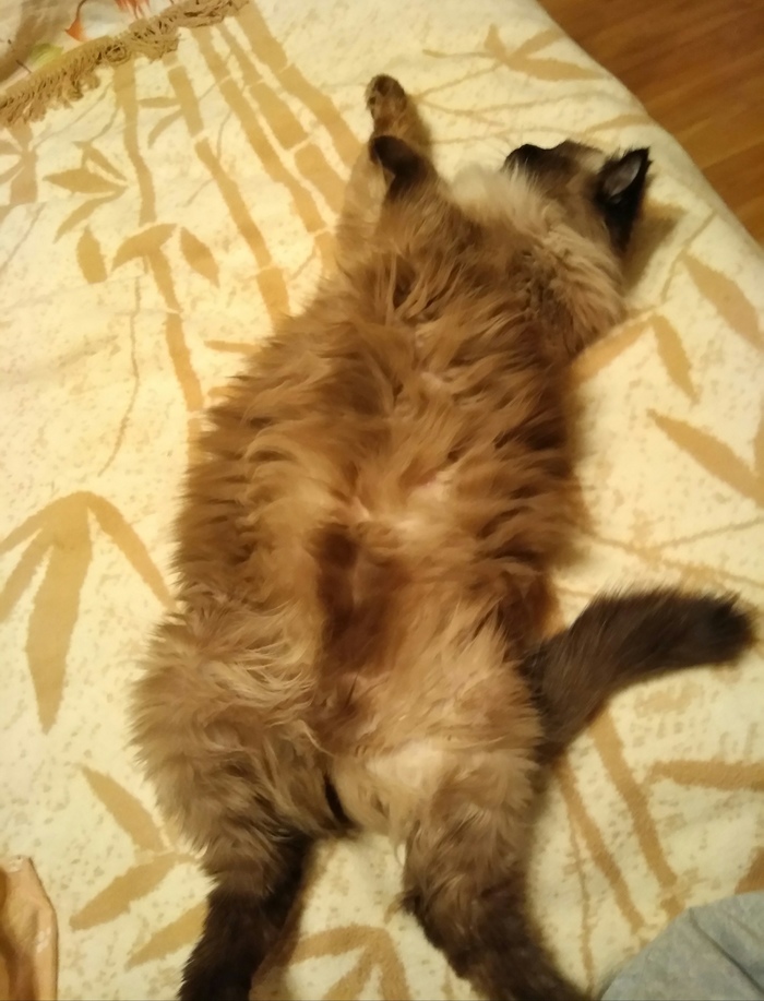 По итогу всего, мы приняли решение, лечение, назначенное в клинике, где делали операцию, прекратить. По приезду домой сняли попону. Сняли бинт с места установки катетера. Через полчаса, кошка стала нормально ходить, а не ползать. Ещё через час, попила воды и покушала, немного, так как нужно вводить пищу по чуть-чуть после долгого голодания, но съела все что дали. Вечером вела себя почти как обычно. Видно было, что сил ещё мало, но это была уже НАША Буся, что ей гораздо лучше. После еды стала умываться), причём шов не тронула(!), мы следили. Вылизала лапки, спинку, пару раз сделала "хобу")))