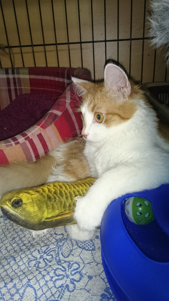 У нас совсем не было мест на передержках и поселить огромного добряка пришлось в кошачий приют, так как возить к ветеринару его надо было каждый день, а деревня довольно далеко.
