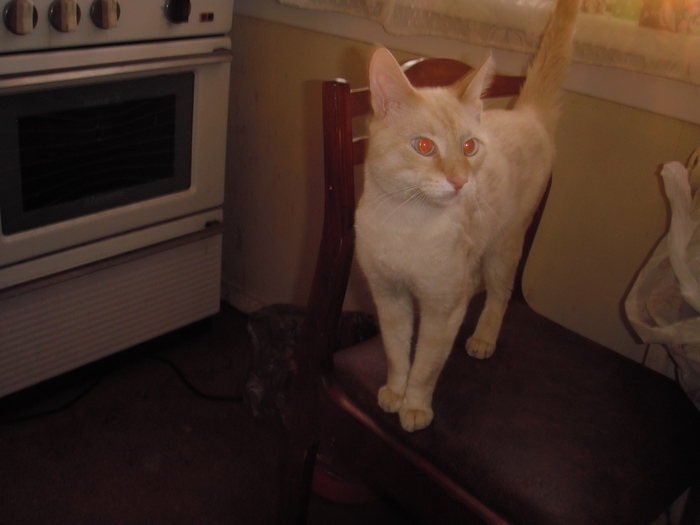 В полшестого я прихожу с работы. Пока меня не было, кот СХОДИЛ в лоток (оказывается, все, что мне нужно было сделать для этого - это уйти из дому)). Как только пришла домой, что-то мне помяукал, и стал снова, как и накануне вечером, ЕСТЬ корм. Как будто специально меня ждал, чтоб покушать в компании))