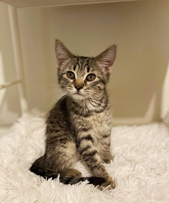 Смокки, черно-белого окраса, быстро нашёл новую семью. Ему повезло, что его внешний вид вписывается в чьи-то стандарты "красивого" котёнка. А вот Мич — "просто шпротный". Да, для многих людей обычный полосатый окрас почему-то приравнивается к тому, что котёнок недостоин внимания. Так и остаётся этот трогательный малыш в ожидании, пока его заметят. Он такой же, как Смокки, — добрый, ласковый, игривый, но для большинства он невидимка. Почему? Потому что он "не модный"?