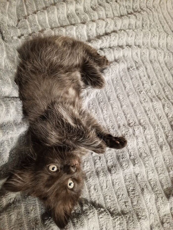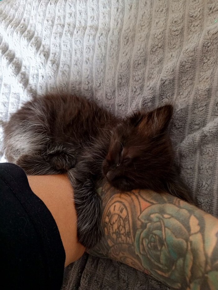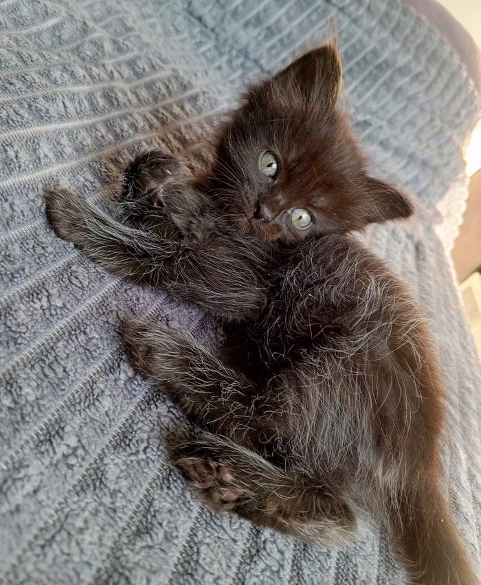 А если серьезно, ищу ручки мелкой шиложопой мадмуазель. 2 месяца, окрас черный дым. Чистая, здоровая, проглистогонена, выкинутая в подъезд очередными нелюдями, почему-то называющимися соседями (Воронеж, ЖК Лазурный, вам привет).