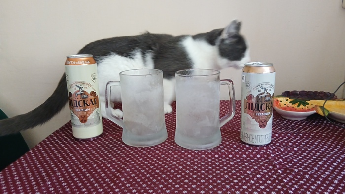 Коллеги, добрый день! хочу сравнить новую и старую версии Лидского премиум методом эксперимента. Для этого беру старую пинту и новую нольсорокпятку, две охлаждённых кружки и кота Ксериона.