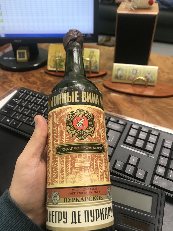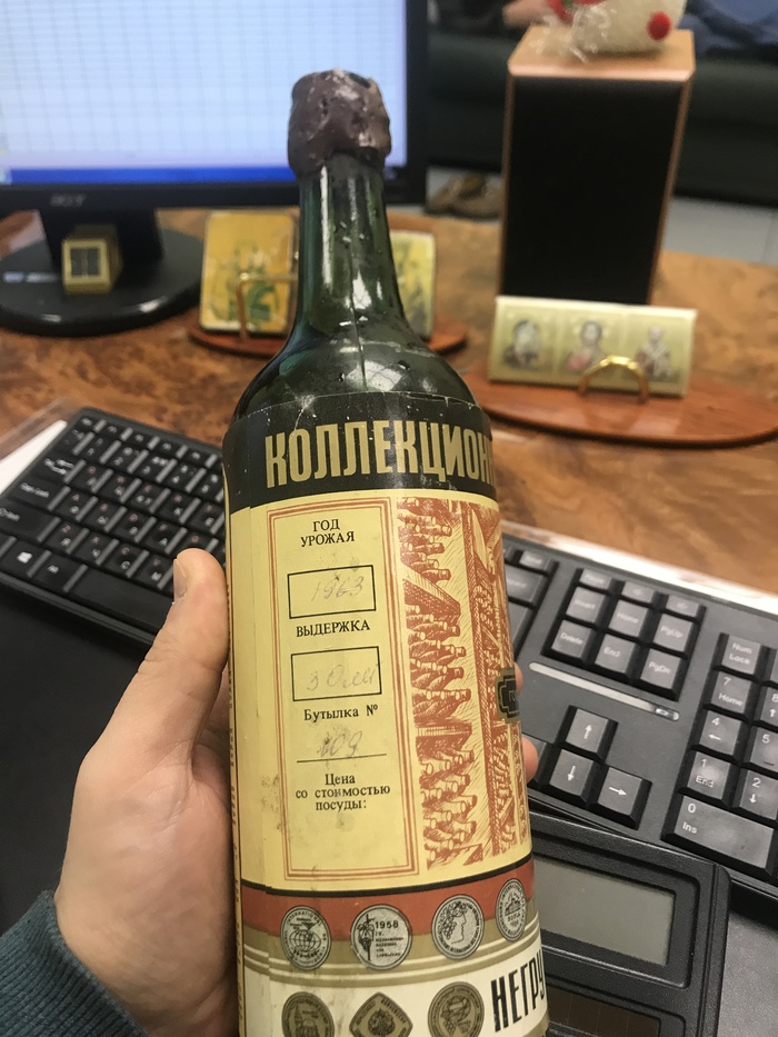 Мой друг въезжал в дедушкину квартиру, которая досталась ему по наследству. Начал делать ремонт, разгребал балкон и обнаружил эти бутыли. Он как и его дедушка, в отличии от меня, не пьет и хотел выкинуть. Но потом презентовал мне. Бутылок было 12. Какие то распил с друзьями, несколько были подарками для друзей. 2 после росписи женой были переданы родителям. Те были фирмы Alexander и датировались годом рождения моей мамы и отца жены 1973 год. (Забавно, с женой сейчас развожусь) Осталось 2, которые даже сохранили подарочную упаковку. К сожалению, индефицировать год розлива этих не могу.