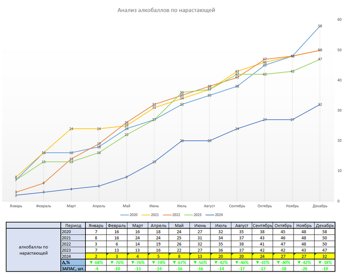 ЗАПАС, шт. – мой избыток или дефицит алкобаллов по нарастающей