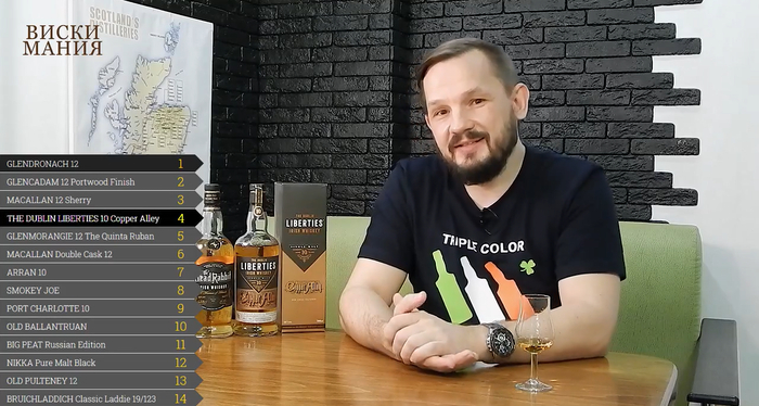 The Dublin Liberties Copper Alley 10 YO Single Malt, двойная перегонка, крепость 46%, без фильтрации, колер, бочки - экс-бурбон (спирты Cooley Distillery) и довыдержка 6,5 месяцев в европейских экс-олоросо (Jerez de la Frontera), бутилирован октябрь 17-го.