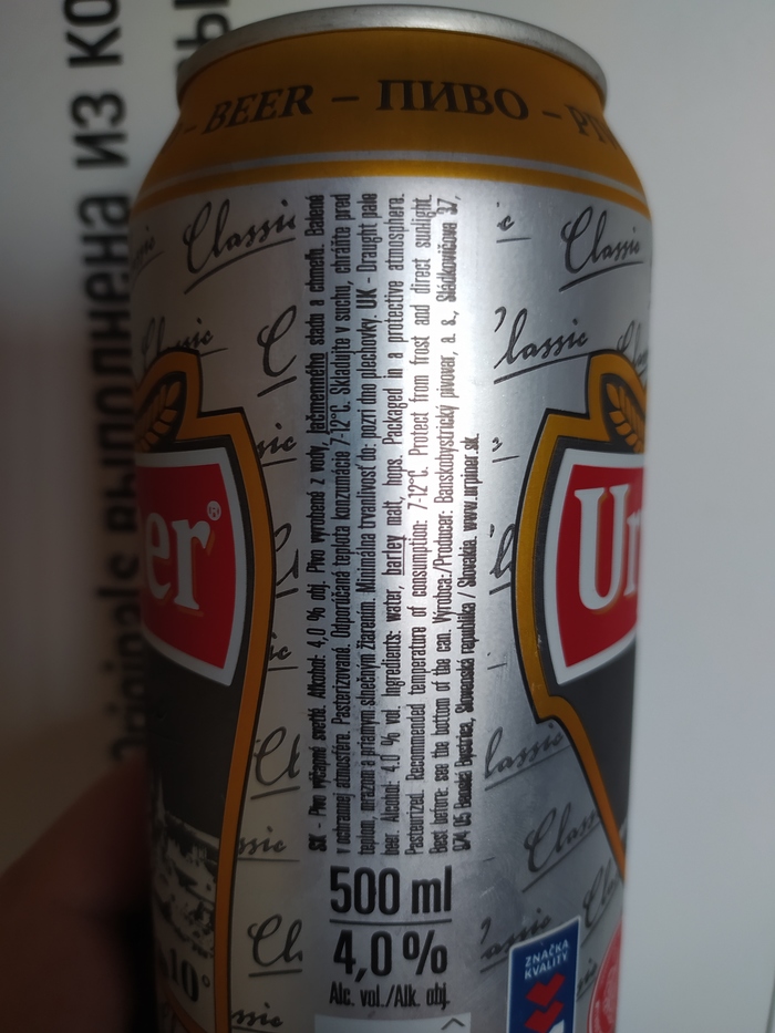 Сегодня попался вот такой экспонат, ранее уже его пробовал. Но сегодня фото отчет и тд. Значит был пойман в центре Москвы, за 94р., для своего региона уточняйте. Красивая банка, отверстие для налива расширено, емкость 0,5 литра, производство Словакия.