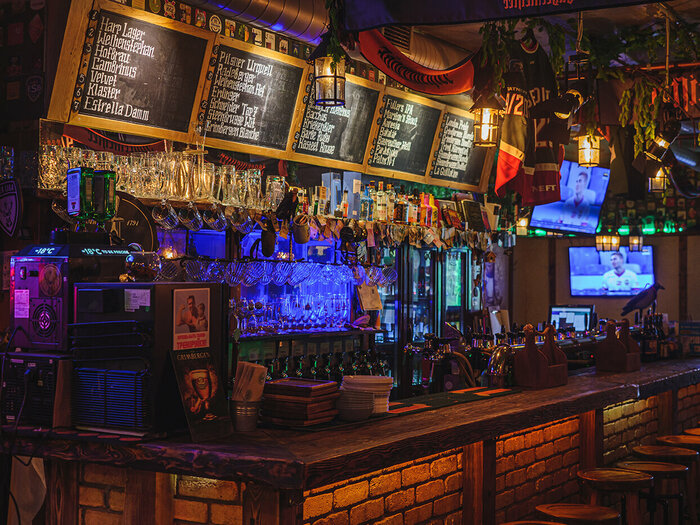 Плюсы: - Большой ассортимент. Есть из чего выбрать. В среднем около 30 сортов разливного на кранах + большой выбор банок в холодильнике. - Неплохая кухня.