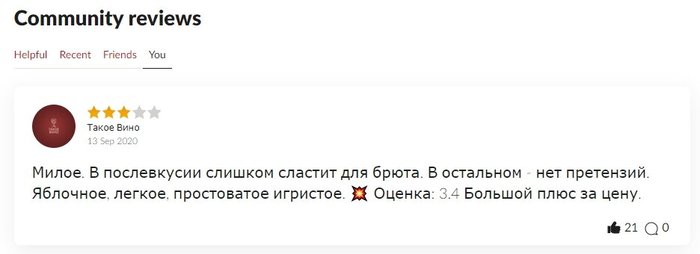 Это не значит, что оно станет нашим любимым вариантом из серии "а на сдачу давай хотя бы что-то возьмем". Совсем не так. Даже когда "хочу выпить, нет сил терпеть" и трубы горят, можно подыскать вино поинтереснее (и, разумеется, немного подороже). Именно поэтому себе мы его больше не купим, но вам чуть ниже про него расскажем.