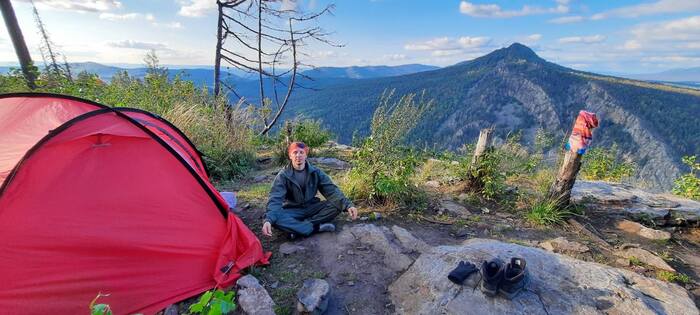 4. Мой первый выезд в горы для занятия альпинизмом состоялся всего через пару недель после прихода в Альпклуб. На тот момент мой тренировочный план состоял из таких упражнений, как "Подъем с дивана, 4 подхода по 10 повторений", "Жим кнопок на клавиатуре" и "Тяга дверцы холодильника". Как понятно, в своих силах я был уверен, ровно до момента первой прогулки с набором каких-то 300 метров вверх со всем снаряжением.