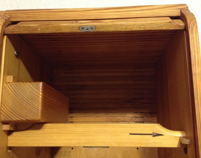 Доброго времени суток ! В довесок к стульям из прошлого поста Помогите ,пожалуйста , со старой мебелью ! (Спасибо всем кто откликнулся ! )есть у меня ни то ящик , ни то шкафчик явно сделанный в советское время. Опять же долгий и упорный гуглёж не дал мне никакой информации о его происхождении и назначении , посему использую его как хлебницу и ящик для сыпучих продуктов.