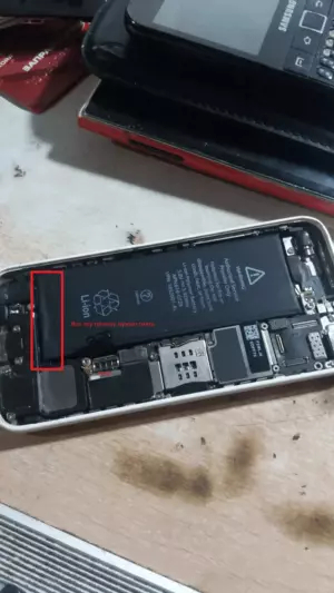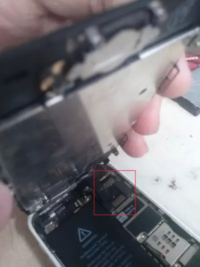 iPhone не заряжался и не подавал никаких признаков жизни. Болты снизу были уже кем-то выкручены до меня(или просто выпали при падении), однако защитные экраны были на месте. Вероятно, когда-то менялся дисплей. Дисплей снимается легко, если его аккуратно снизу поддеть ногтем или пластиковой картой. Присосок не нужно(но нужно быть предельно аккуратным).