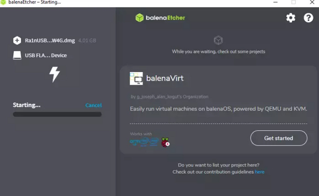 Но если нет, то качаем balenaEtcher, и вот этот live образ osx86 под названием ra1nUSB. Это не совсем легально, но кто ж будет с этим замарачиваться(НЛО, если не устраивает прямая ссылка, маякните в комменты - удалю). Берем флэшку на 4гб или 8гб и записываем скачанный dmg.