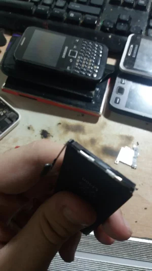 Отлично. Аккумулятор наверняка меняный, и навряд ли его так сильно прилепляют туда, как на заводе. Поэтому пластиковой картой или медиатором со всех сторон поддеть - и вылезет.