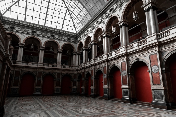 7. Массивные конструкции из металла. При возведении зданий стали применять огромные по величине округлые и квадратные балясины и двутавровые колонны. Иногда металлическую отделку в дизайне имитировали дешевой технологией, в состав которой входил крашеный бетон, стекло и хром.