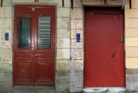 9. Простые плоские орнаментированные металлические или деревянные двери, часто с декоративными решетками.