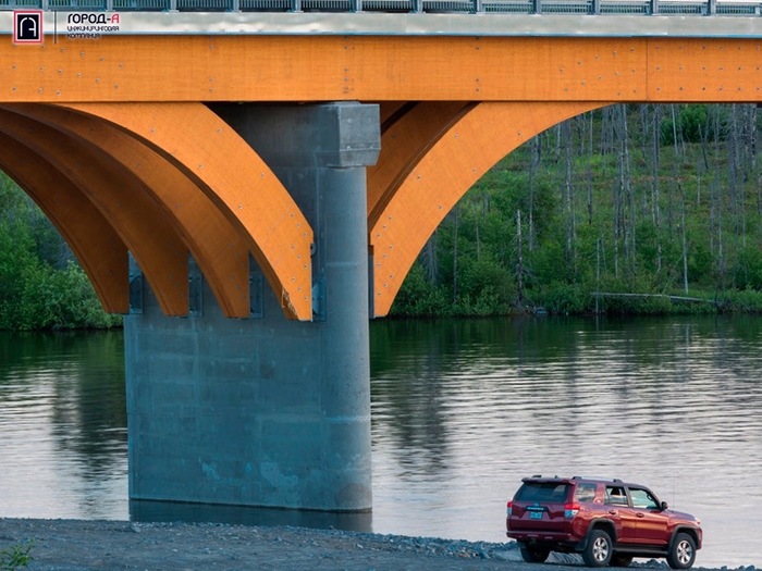 Уникальный мост из клееного бруса в Мистиссини, Канада