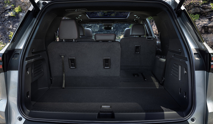 Traverse сохранил фирменную концепцию: он имеет три полноценных ряда сидений (галерка рассчитана на троих пассажиров), за которыми осталось место для багажника. Увы, компания Chevrolet пока не опубликовала характеристики, но едва ли новый Traverse стал ощутимо короче предшественника, который насчитывал без малого 5,2 м в длину. Опубликован только максимальный объем багажника со сложенными задними рядами: 2763 л вместо 2781 л у прежней модели.